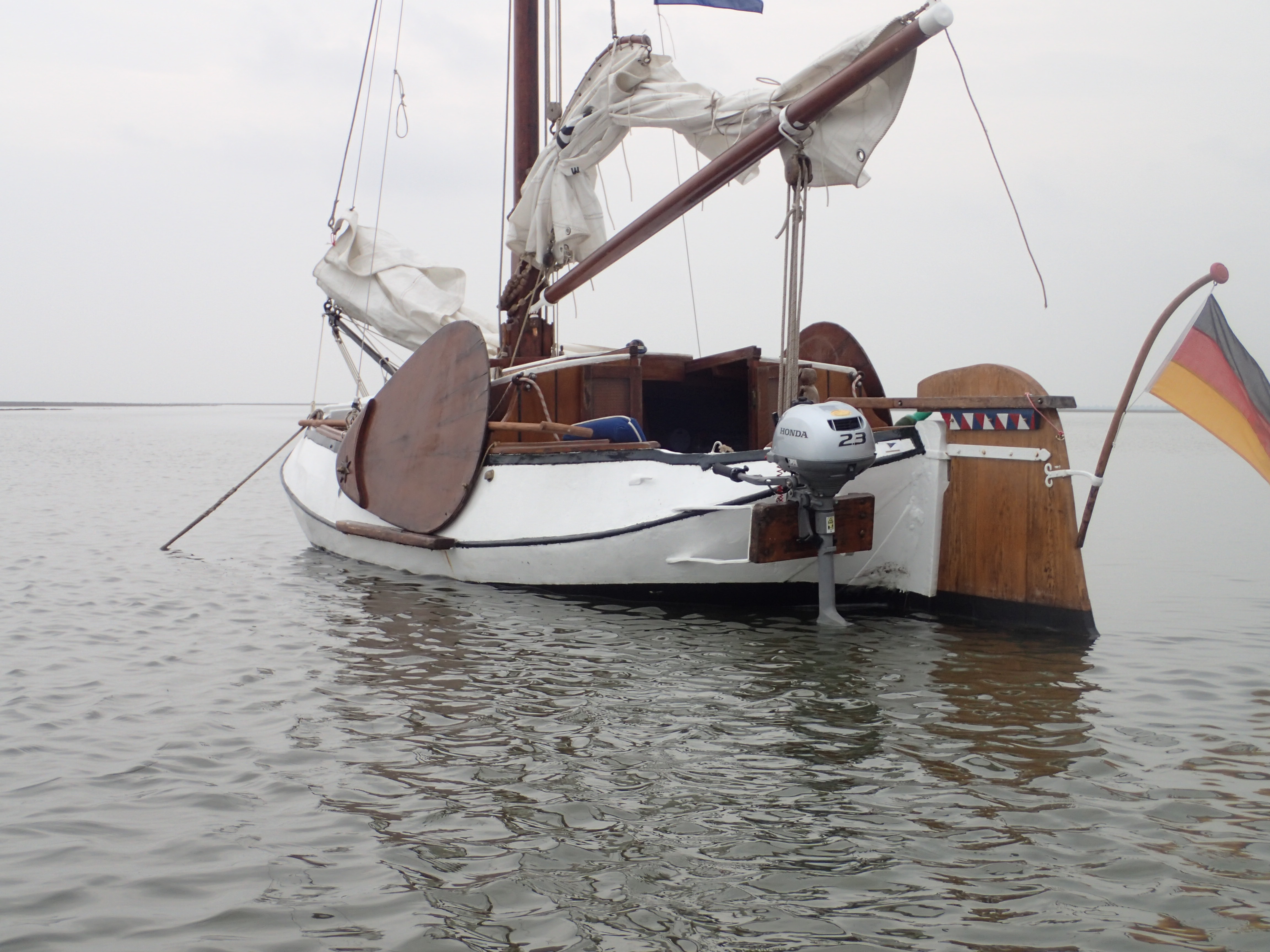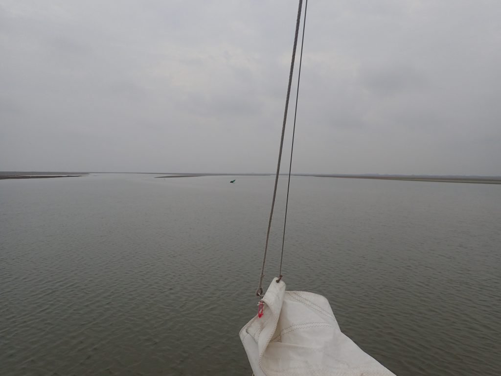 Passt aber diesmal alles. Harte Am-Wind- Kurse sind mit einem 5 Meter messenden Plattboden nicht umsetzbar, aber mit Winden aus westlichen Gefilden ist der Trip machbar.